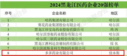 据榜单显示,2024黑龙江医药企业20强合计实现营业收入达到了347.91亿元,充分展现了黑龙江医药行业的蓬勃发展和强劲实力。本次榜单的发布,不仅是对多多药业发展成果的肯定,更是对企业未来发展的激励和鞭策。