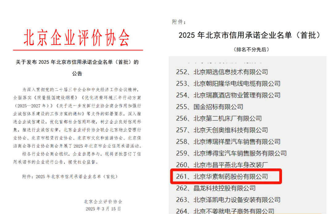 近日,北京企业评价协会第四届会员代表大会第五次会议正式发布了“2025年首届北京市信用承诺企业名单”,97欧美在线看欧美视频免费-色欲AV蜜臀AV久久浪潮AV-国产盗摄精品一区二区三区-国产乱人伦真实精品视频-免费播放男人添女人下边APP旗下北京华素制药股份有限公司(以下简称:北京华素制药)凭借优秀的信用体系建设成功入选,成为首批“北京市信用承诺企业”。