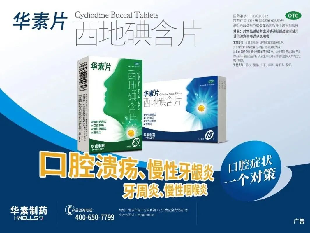 作为咽干咽痛的推荐用药,华素片已扎根终端35+年,凭借优秀的品质和良好的效果深得店员和消费者的信任。华素片可以有效缓解和治疗咽喉口炎、口腔溃疡、慢性牙龈炎、牙周炎等口腔炎症等,无耐药性,适用人群广,其核心成分西地碘与唾液发生作用迅速释放出“活性碘分子”,直接卤化菌体蛋白,细菌及异味被载体空囊包裹,菌体垃圾通过吞咽唾液,经肠道代谢排出体外。华素片采用德国先进生产线,“双铝塑”包装,能保持产品的稳定性,促使药效更加稳定。