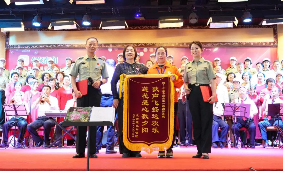 (活动现场,莲花合唱团向泰和睿园送上锦旗)