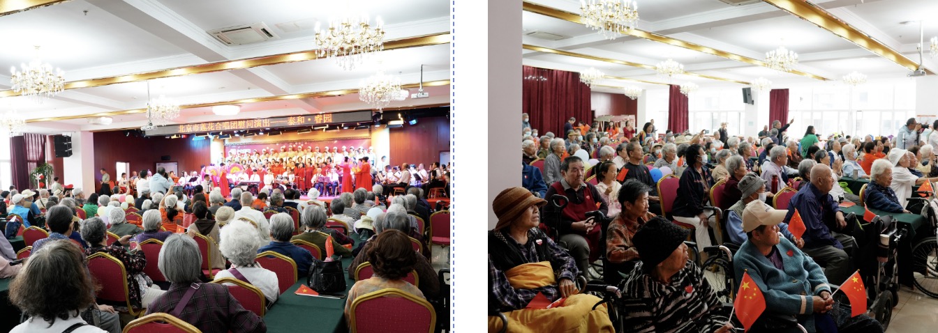 活动伊始,侯占军总裁发表致辞,向莲花合唱团致以诚挚欢迎:“莲花合唱团作为北京知名的文艺团体,以艺术传递温暖、播撒快乐。此次走进睿园,正是以艺术为纽带,为长者搭建精神共鸣的舞台。希望长者们尽情享受这场演出,在睿园体验幸福快乐、健康长寿。同时祝愿莲花合唱团的长者们生活更精彩!”